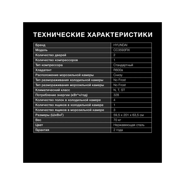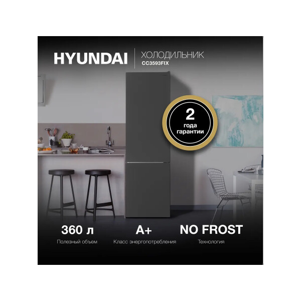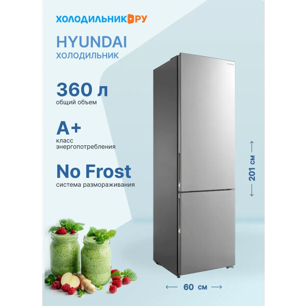 Двухкамерный холодильник Hyundai CC3593FIX может вмещать большое количество продуктов благодаря объемам морозильной (76 л) и холодильной (245 л) камер. Приятный нержавеющая сталь цвет позволяет удачно совместить холодильник с дизайном почти любой кухни. Эта модель бытовой техники имеет продуманный размер, поэтому не займет много места в помещении. За счет оптимальной мощности замораживания можно заморозить рыбу, мясо, овощи и другие продукты довольно оперативно. У морозильной камеры размораживание No Frost, у холодильной No Frost.