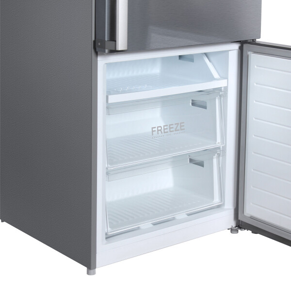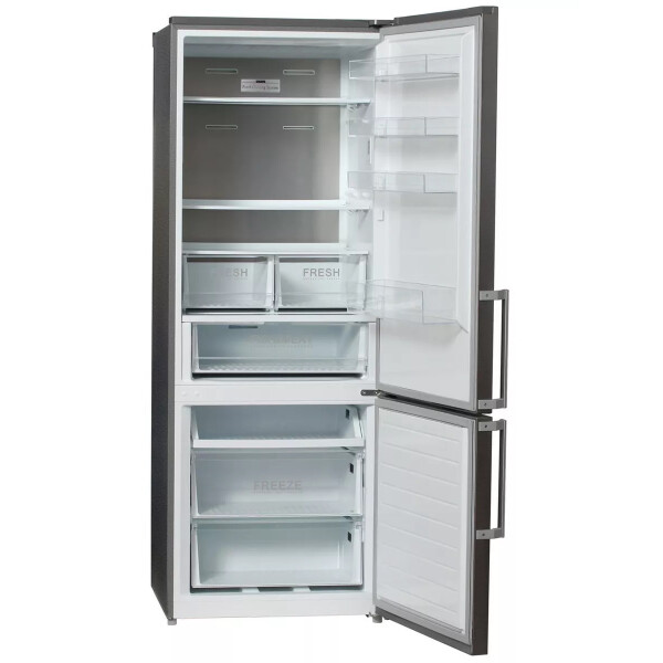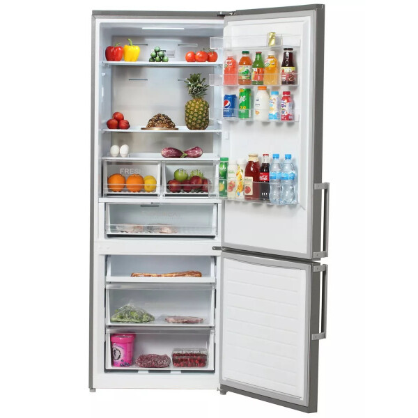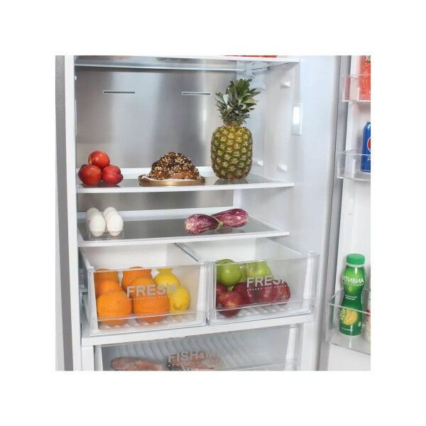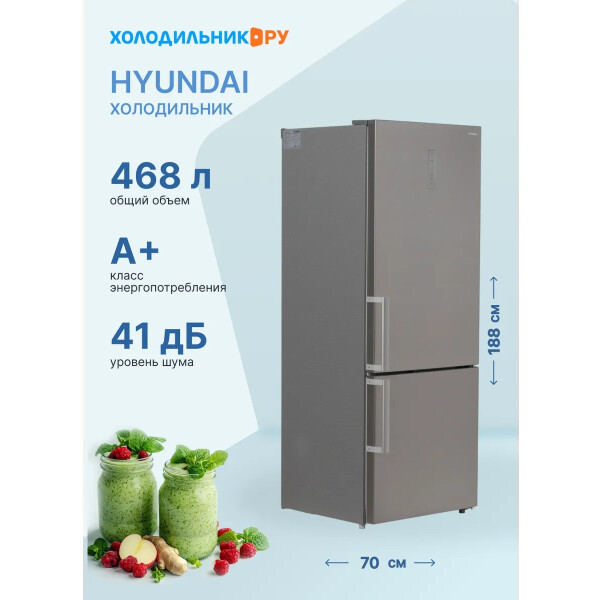 Широкий комби-холодильник от Hyundai станет незаменимым помощником на кухне, сохраняющим продукты вкусными и свежими длительное время. Полезный объем составляет 416 л. и вмещает большое количество еды. Внутри холодильник оснащен выдвижными корзинами и полочками.