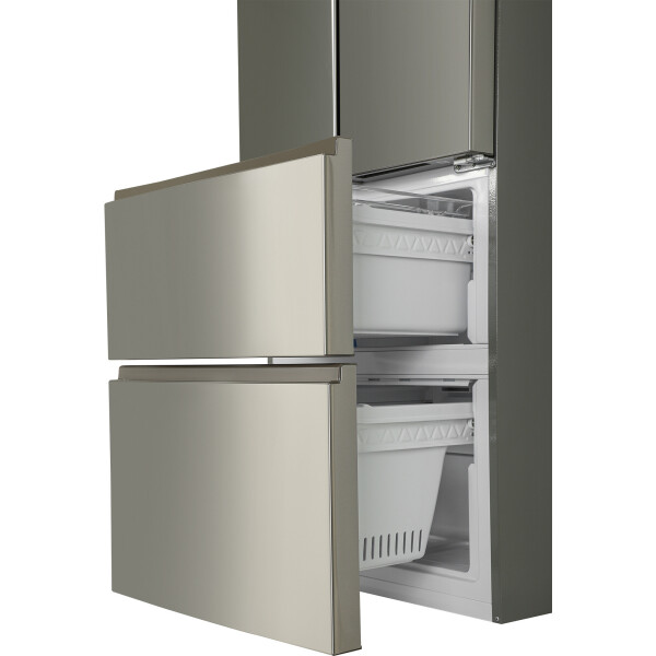 Во всех отделениях холодильника работает система No Frost, автоматически размораживающая их при необходимости. Это избавляет пользователя от лишних хлопот. Режимы быстрого охлаждения и заморозки позволяют за короткое время возвращать температуру на заданный уровень после загрузки очередной порции продуктов или открывания дверцы.