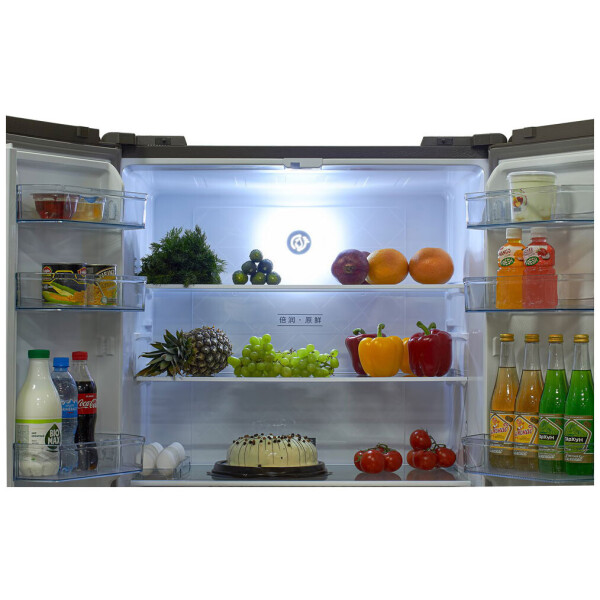 Благодаря максимальному открытию дверей обеспечивается полный доступ ко всему объема холодильного отделения удобно доставать или размещать кастрюли и блюда с приготовленной пищей.