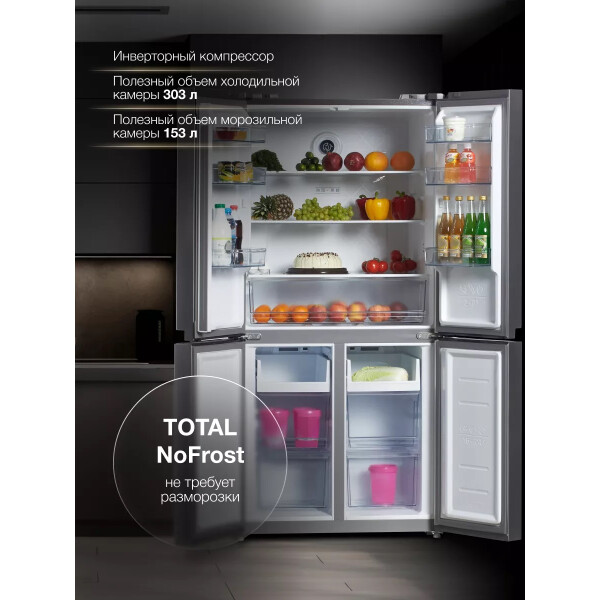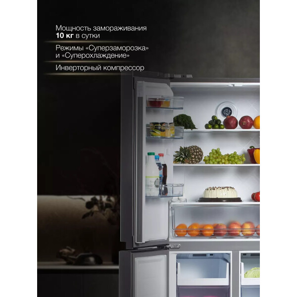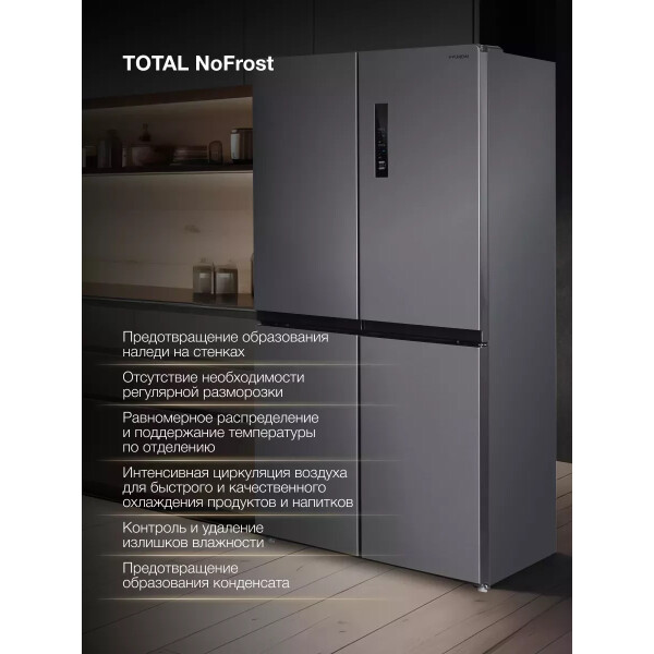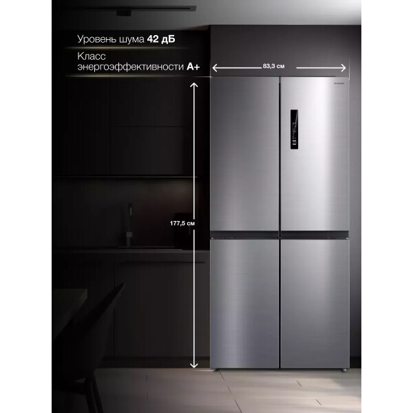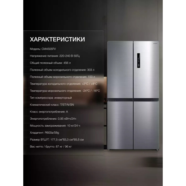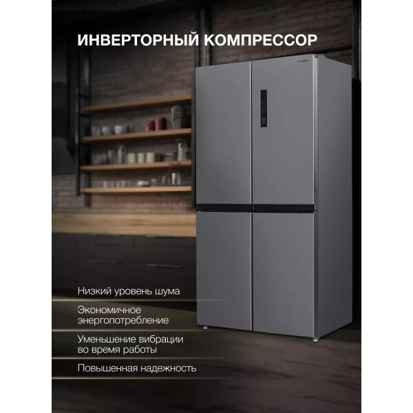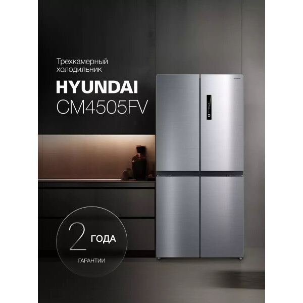 Если Вас интересует вместительный и функциональный холодильник, который позволяет удобно хранить продукты и напитки- обратите внимание на 4-х дверный инверторный холодильник HYUNDAI CM4505FV с 3 отделениями.