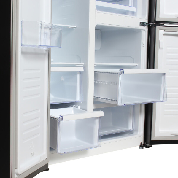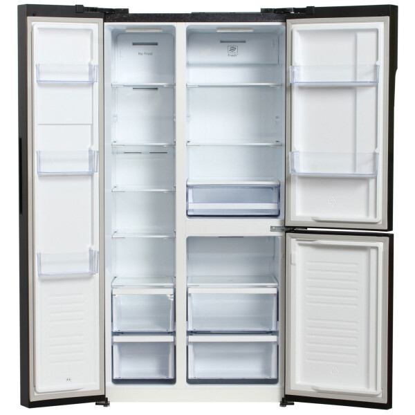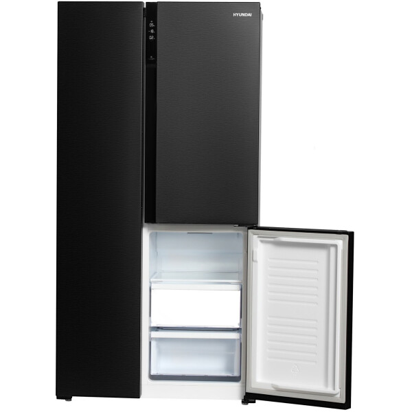 Строгий дизайн и продуманный конструктив воплощен в 3-х дверном инверторном холодильнике HYUNDAI CS5073FV (тип Side by Side).