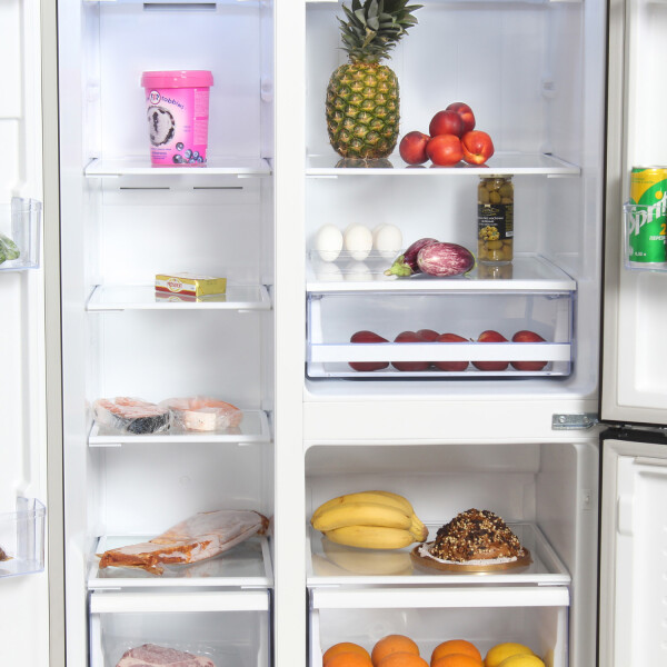 При открытии дверец холодильника автоматически включается светодиодное освещение все продукты будут Вам видны как на ладони.