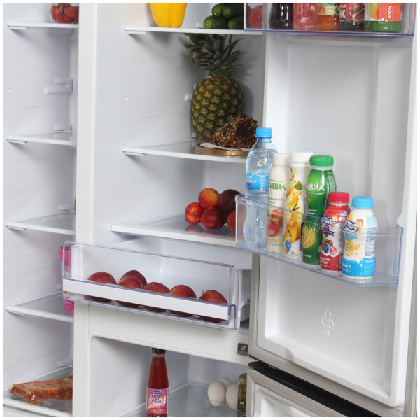 Полки для хранения продуктов выполнены из закаленного стекла Вы можете легко менять высоту полок в зависимости от потребностей, выдвижные ящики обеспечивают быстрый доступ к продуктам. В дверцах холодильника предусмотрены дополнительные вместительные полки для хранения продуктов и напитков.