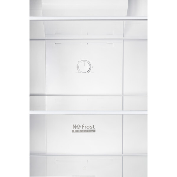 Работает достаточно тихо: уровень шума при работе не достигает 43 дБ. Холодильная камера укомплектована 5 полками из закаленного стекла и 1 ящиком для овощей и фруктов, морозильник 1 ящиком. В обеих камерах для размораживания применяется система No Frost. Контроль температуры обеспечивает индикатор, а устойчивость холодильника регулируемые ножки.