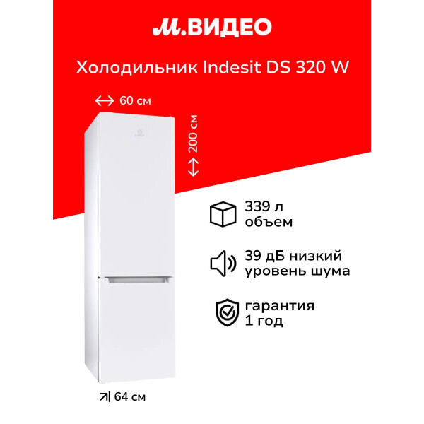 Холодильник Indesit DS 320 W – мощный и эргономичный агрегат общим полезным объемом в 339 л, из которых 87 л приходятся на морозильную камеру, которая расположена снизу и в которой вы за сутки сможете заморозить до 4 кг продуктов. Благодаря системе охлаждения Direct Cool вы сможете оперативно заморозить одновременно большое их количество. В холодильном отделении объемом 252 л удобство хранения обеспечивается наличием ящиков под фрукты и овощи.