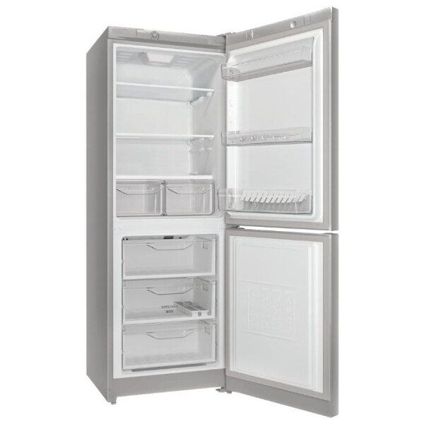 Холодильная камера INDESIT DS 4160 S размораживается капельным способом, в то время как морозильная - ручным. При отключении электроэнергии техника способна на протяжении 15 часов сохранять холод в своих отсеках. Общий полезный объем представленного устройства составляет 269 л, из которых 182 литра приходится на холодильную камеру, а 87 л - на морозильную. Дверцы техники можно перевесить на наиболее удобную для вас сторону. Внешнее покрытие техники представлено сплавом металлов.