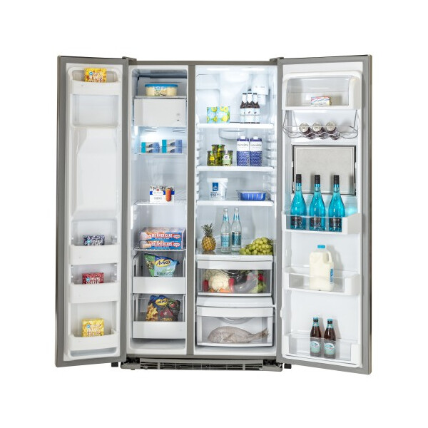 Холодильник имеет две вместительные камеры с системой трехъярусных выдвижных ящиков. Обладает функциональным дисплеем на внешней стороне, при помощи которого вы сможете отслеживать температурные показатели устройства.