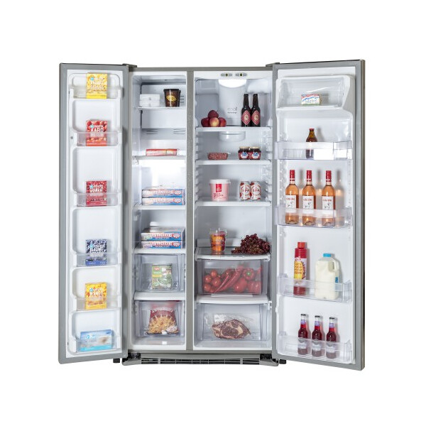Конструкция модели предусматривает два отдела: холодильное отделение обладает вместительностью 400 л, а морозильная камера включает в себя 257 л. Этого объема будет достаточно для того, чтобы вы могли хранить внутри холодильника большое количество охлажденных и замороженных продуктов. Прибор позволит делать приличные запасы мяса, овощей, фруктов или ягод в летнее время и использовать их для приготовления зимой.