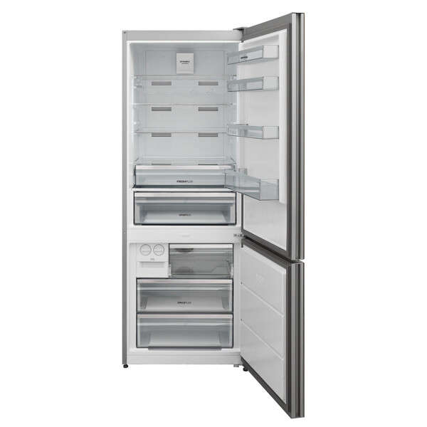 Специальный вентилятор в холодильной камере обеспечивает перемешивание воздуха и соответственно равномерное распределение температуры. Также динамическая система способствует уменьшению, смешиванию запахов в холодильнике и быстрому охлаждению большого количества продуктов.