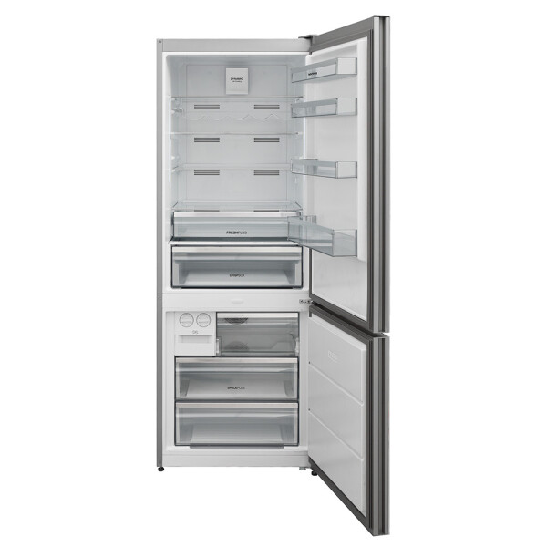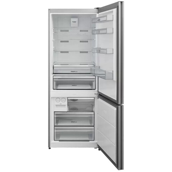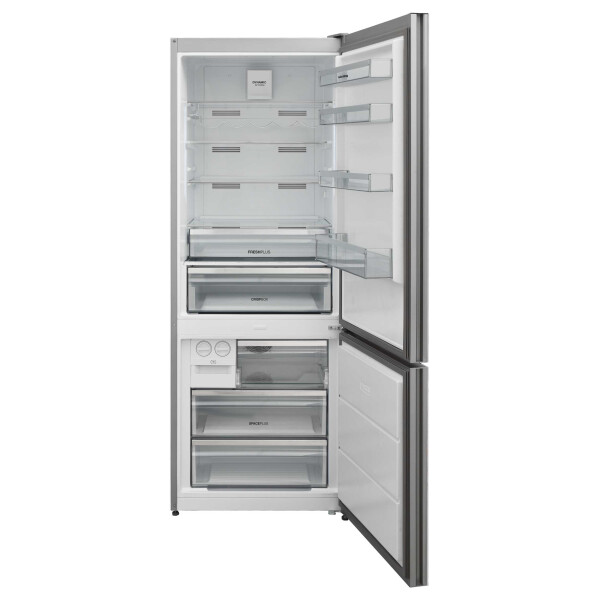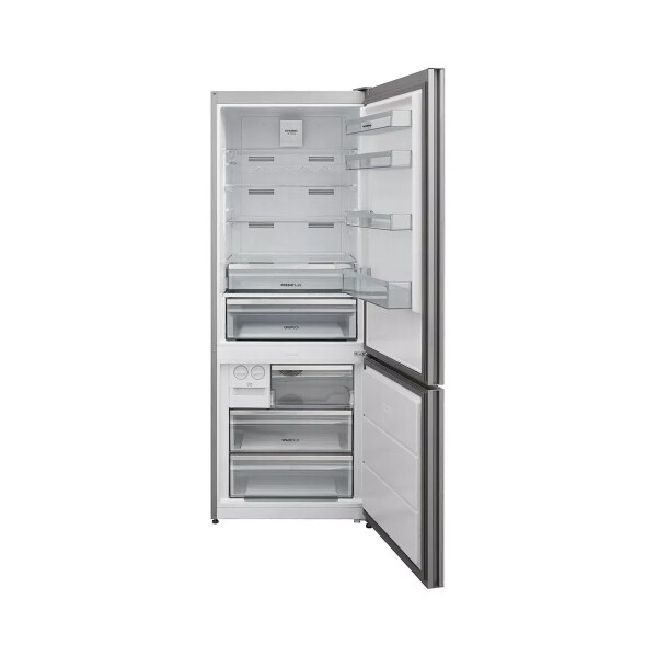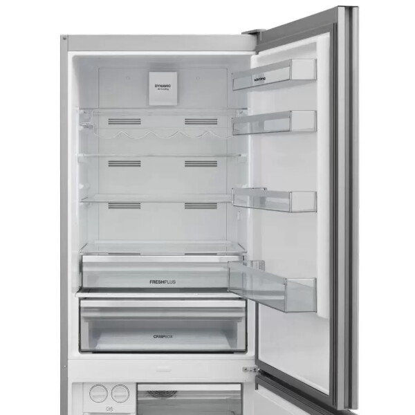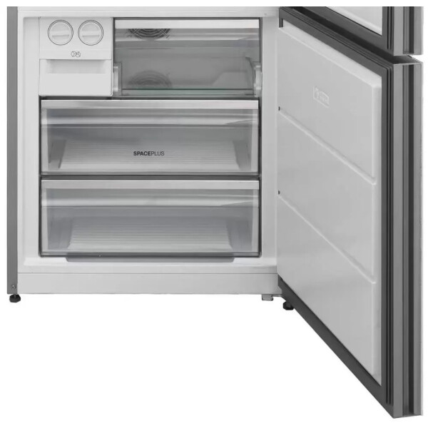 В холодильнике Korting KNFC 71928 GBR предусмотрен большой ящик с регулировкой влажности, куда можно сложить овощи и зона сохранения свежести. В последней устанавливается уникальный микроклимат, который обеспечивает долгий срок хранения вкуса, питательных веществ и свежести большинства продуктов. Морозильное отделение дополнено увеличенным ящиком SpacePlus. Также есть отсек, предназначенный для приготовления льда. Уровень шума работающей техники не превышает 43 дБ, благодаря чему она не будет отвлекать вас от важных дел или трапезы за кухонным столом. В качестве хладагента используется R600A, применение которого способствует уменьшению энергопотребления. Если дверь техники останется в открытом состоянии, система сообщит об этом с помощью звукового сигнала.