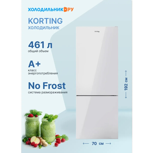 Холодильник Korting KNFC 71928 GW отдельно стоящая техника с электронным управлением и цифровым дисплеем, на который выводятся основные параметры работы. Состоит из холодильной и морозильной камеры, объем которых составляет 333 л и 128 л соответственно. Имеет систему No Frost, которая избавит от необходимости регулярно размораживать камеру за счет удаления инея в автоматическом режиме. Вентилятор внутри холодильника перемешивает воздух и способствует равномерному распределению температуры внутри емкости, за счет чего достигается динамическое охлаждение. Кроме того, подобное решение помогает уменьшать смешивание запахов внутри камеры. Дверцы устройства можно перевесить, что позволяет выбрать сторону, наиболее оптимальную для всех домочадцев. Сделать это можно самостоятельно.