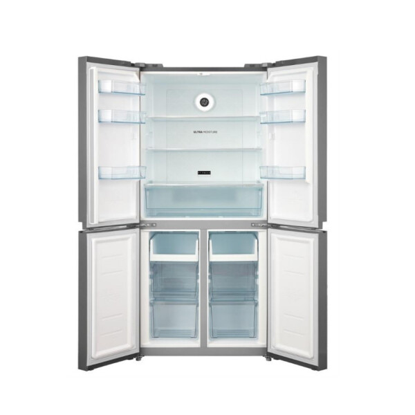4-х дверный холодильник Korting KNFM 81787 X выполнен в цвете нержавеющей стали. Он имеет сенсорное управление Smart Touch, которое удобно расположено на внешней стороне двери, а также динамическую систему охлаждения Dynamic Air Cooling, систему автоматической разморозки Full NoFrost и дополнительный датчик температуры Thermo Sense.