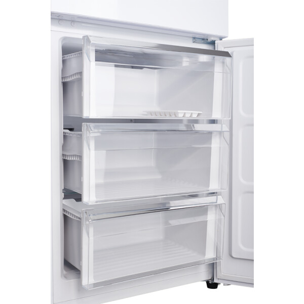 Двухкамерный холодильник Kuppersberg NOFF19565W — модель высотой 195 см с технологией автоматического оттаивания No Frost, которая не требует разморозки. Прибор оснащен стеклянными полками с возможностью регулировки по высоте, зоной свежести объемом 25 л и ящиком для фруктов и овощей.
