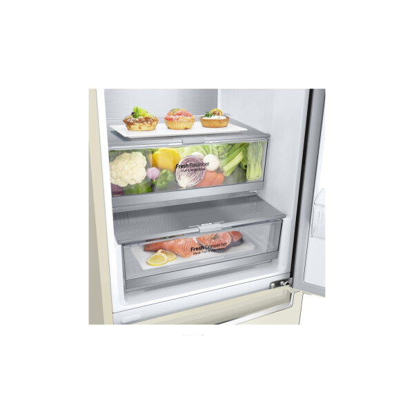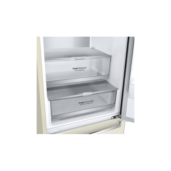 Панель холодного воздуха в верхней части холодильника обеспечивает на 32%* более быстрое и равномерное охлаждение, чтобы ваши продукты сохранялись свежими еще дольше. Различные продукты требуют различных температурных режимов хранения. С помощью FRESHConverter* можно выбрать один из трех температурных режимов (-2: Мясо/ 0: Рыба / 3: Овощи). Полка для вина и складная полка в два сложения позволяют легко группировать продукты по типу для удобной организации продуктов внутри холодильника. Усовершенствованная складная полка теперь имеет два этапа сложения, что позволяет хранить крупные и габаритные продукты или блюда. если вы истинный ценитель вина, то удобная винная полка то, что вам нужно. Теперь она позволяет хранить до 5 бутылок. Уровень шума в новых холодильниках LG DoorCooling+ 36 дБ, что на 25% ниже, чем в предыдущих моделях. Бесшумная и надежная работа, чтобы ничего не нарушало вашего спокойствия дома. С нулевым зазором холодильник LG можно ставить вплотную к стене и открывать дверь на 90. Благодаря этому ящики выдвигаются беспрепятственно.