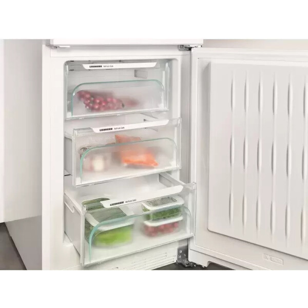 Отделение BioCool позволяет регулировать уровень влажности в холодильном отделении для увеличения свежести овощей и фруктов. Для лучшего обзора и удобной эксплуатации контейнеры установлены на специальные ролики или телескопические направляющие. Установка уровня влажности осуществляется с помощью специального регулятора.