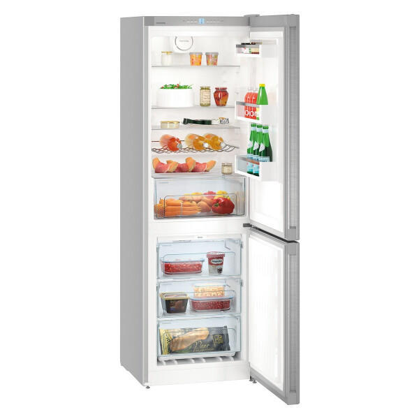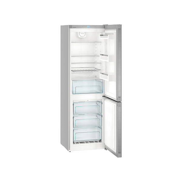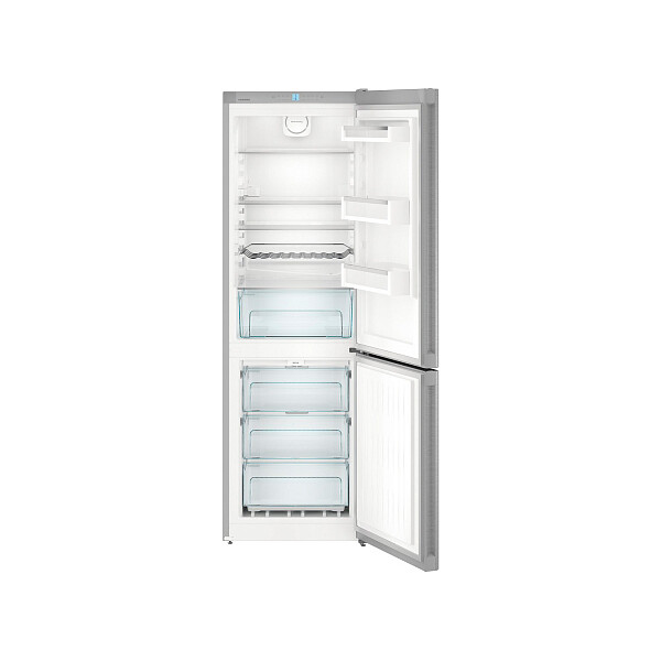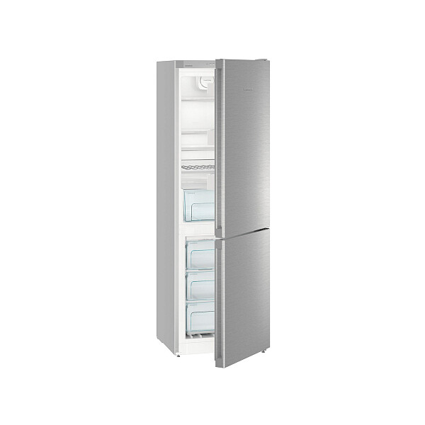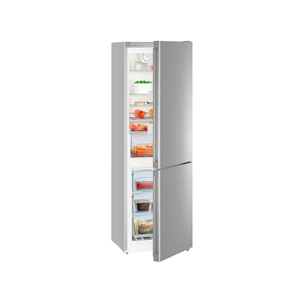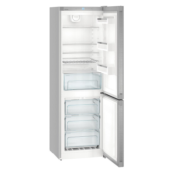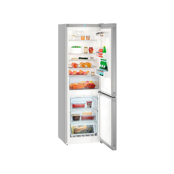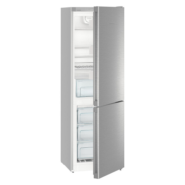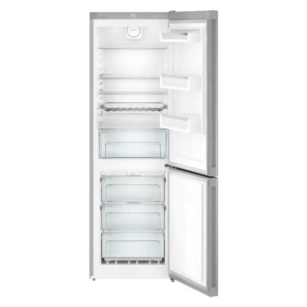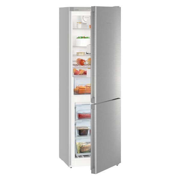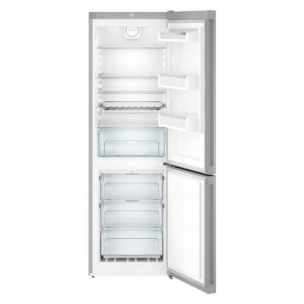 Liebherr CNef 4313 двухкамерный холодильник серебристого цвета. Может быть установлен вплотную к стене или в готовую нишу. Оснащен дисплеем, где отображается цифровой индикатор температур в холодильной и морозильной камерах. Оба отделения имеют автоматическую систему размораживания, холодильная камера освещается светодиодной лампой.