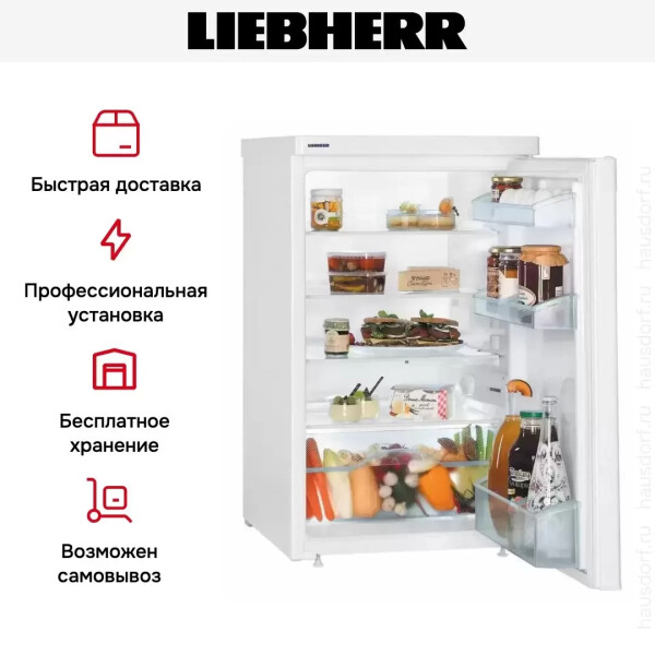 Холодильник Liebherr T 1400 – миниатюрный, но очень полезный помощник на даче или в загородном доме. Этот прибор высотой 85 см и шириной 50.1 см не имеет морозилки, зато обладает тремя вместительными полками в холодильной камере. Кроме того, у этого мини-холодильника имеются вместительные ящики под фрукты и емкие боковые полочки для вкусных мелочей или мини-бара. Экономичное энергопотребление, автономное сохранение холода в течение 10 часов после отключения электроэнергии, более чем компактные размеры – все это делает этот холодильник чрезвычайно полезным.
