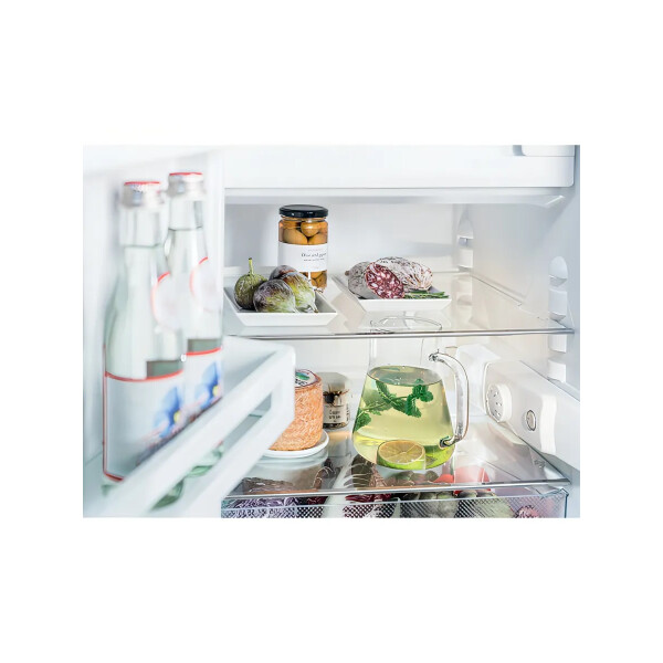 Внутреннее пространство холодильника Liebherr T 1414 поделено на три части полками из закаленного стекла, выдерживающими серьезную нагрузку. Он привлечет в первую очередь внимание людей, которые не хотят переплачивать за неиспользуемые ими объемы холодильника.