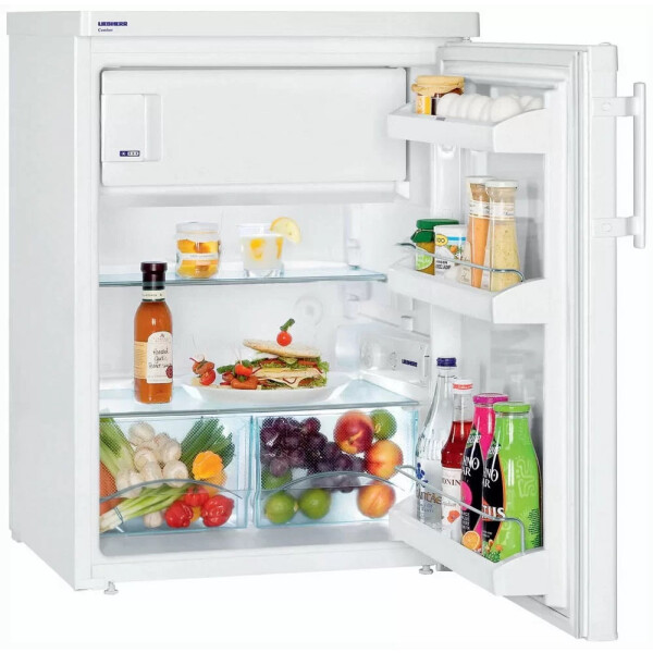 Компактный и функциональный холодильник Liebherr T 1714 с полезным объемом 143 л позволяет хранить ваши продукты и заморозки. Корпус устройства выполнен из металла и высококачественного пластика белого цвета, который впишется в любой интерьер. Морозильная камера расположена в верхней части и отделена от холодильного отделения пластиковой дверцей. Удобная система хранения включает в себя полки, выполненные из сверхпрочного стекла, пластиковые ящики для хранения овощей, фруктов и дверные кармашки.