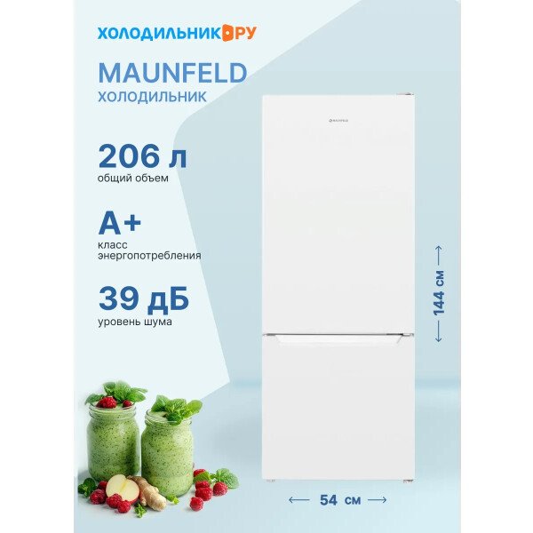 хХолодильник MAUNFELD MFF144SFW окажется прекрасным вариантом для кухни. Морозильная камера располагается снизу, поэтому не придется поднимать тяжелые продукты и упаковки на высоту. Две двери обеспечивают отдельный доступ к каждой из камер.