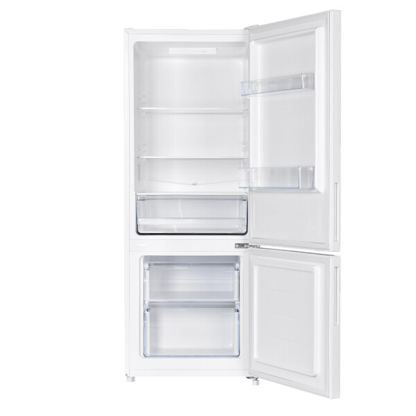 Объем холодильной камеры составляет 153 л, она, как и морозильная, размораживается вручную. Ее пространство в холодильнике MAUNFELD MFF144SFW поделено 3 полками, которые выполнены из закаленного стекла. Дополнительно имеется один ящик. Реализована функция суперохлаждения.
