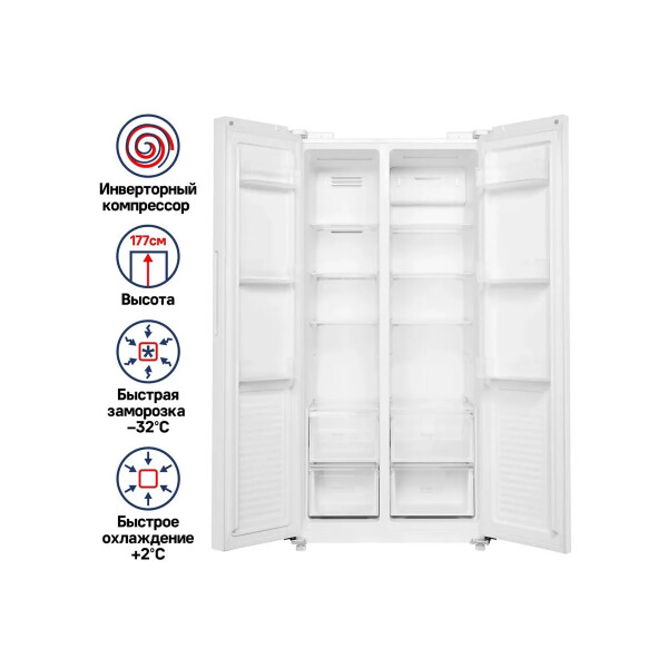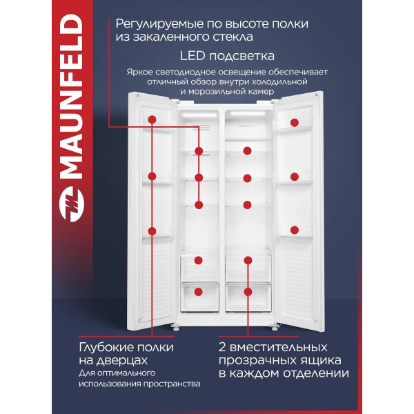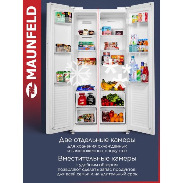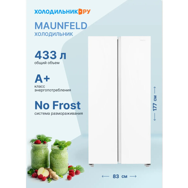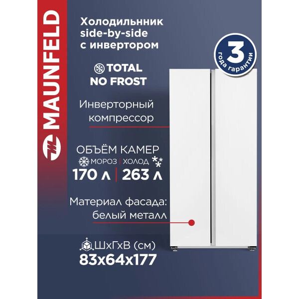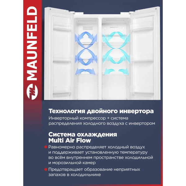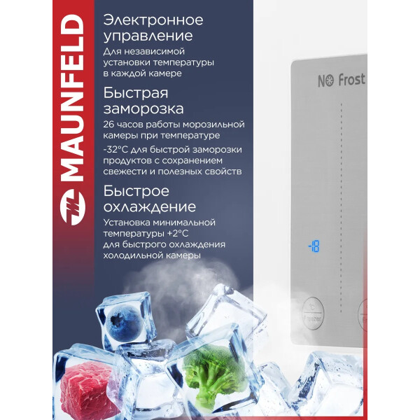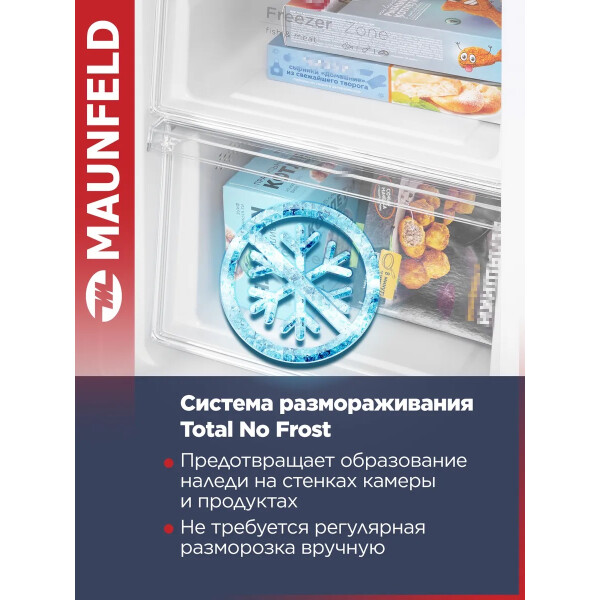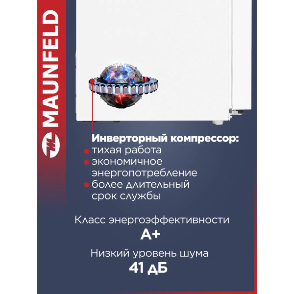 Холодильник Maunfeld MFF177NFWE с инверторным компрессором и электронным управлением. Система охлаждения - Total No Frost.