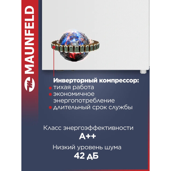 Внутренние стенки и внутренняя поверхность дверцы холодильников MAUNFELD подвергаются специальной антибактериальной обработке, благодаря чему обеспечивается постоянная санитарная безопасность.