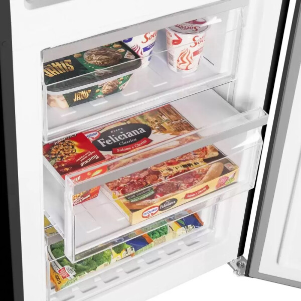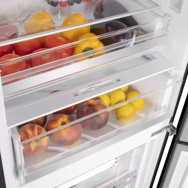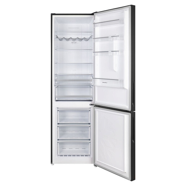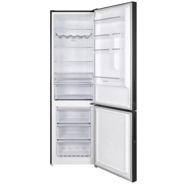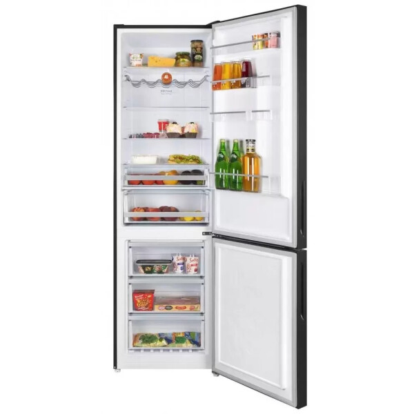 Отдельно стоящий холодильник MAUNFELD MFF200NFB выполнен в цвете черное стекло. Морозильная камера расположена снизу, имеет 3 ящика для хранения и вмещает до 94 л продуктов. Холодильное отделение оснащено 4 полками из закаленного стекла, которые регулируются по высоте, а также 2 ящиками для овощей и фруктов. Дополнительно прибор комплектуется лотком для яиц, решеткой для бутылок и емкостью для льда.