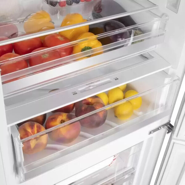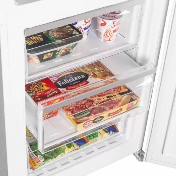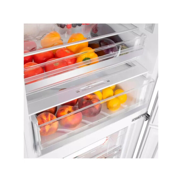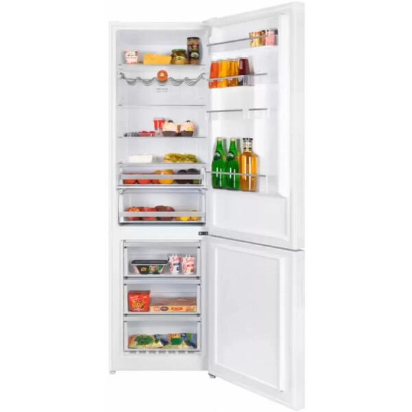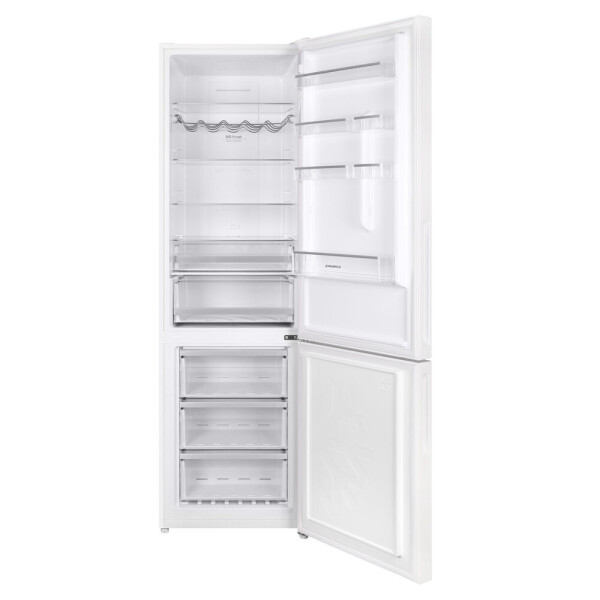 Отдельно стоящий холодильник MAUNFELD MFF200NFW выполнен в цвете белое стекло. Морозильная камера расположена снизу, имеет 3 ящика для хранения и вмещает до 94 л продуктов. Холодильное отделение оснащено 4 полками из закаленного стекла, которые регулируются по высоте, а также 2 ящиками для овощей и фруктов. Дополнительно прибор комплектуется лотком для яиц, решеткой для бутылок и емкостью для льда.