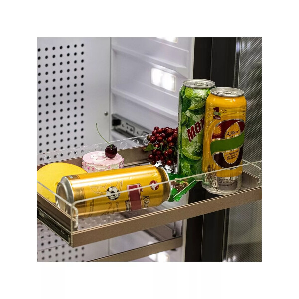 Так как он имеет стеклянную дверь и панорамное освещение, в нём можно не только хранить, но и демонстрировать товары или продукты и использовать его как холодильник-витрину, что несомненно повысит продажи, при использовании его в коммерческих целях.