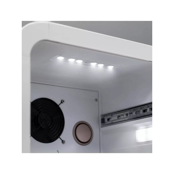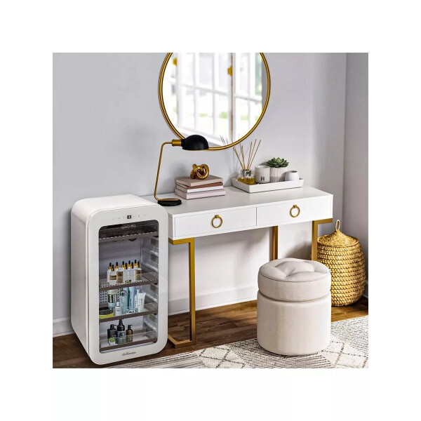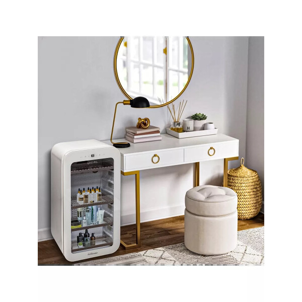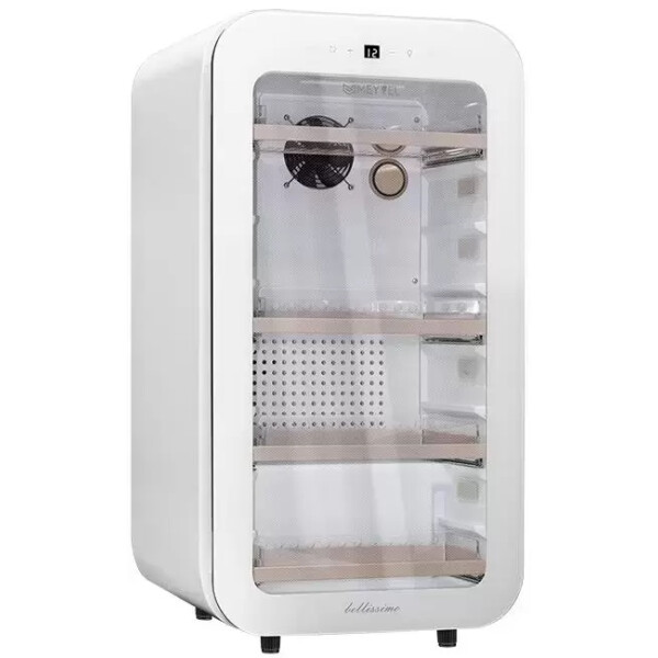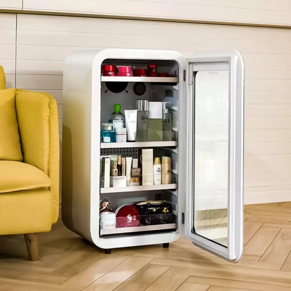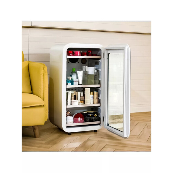 В отличии от термоэлектрических моделей, данная модель потребляет мало электроэнергии и стабильно поддерживает температуру даже в жарких помещениях. Одним словом- этот холодильник будет идеальным решением для профессионального применения визажистами, косметологами или просто в домашних условиях. Он довольно вместительный и в нём есть возможность размещать большие упаковки.