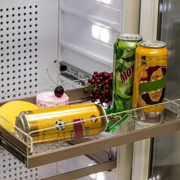 Так как он имеет стеклянную дверь и панорамное освещение, в нём можно не только хранить, но и демонстрировать товары или продукты и использовать его как холодильник-витрину, что несомненно повысит продажи, при использовании его в коммерческих целях.