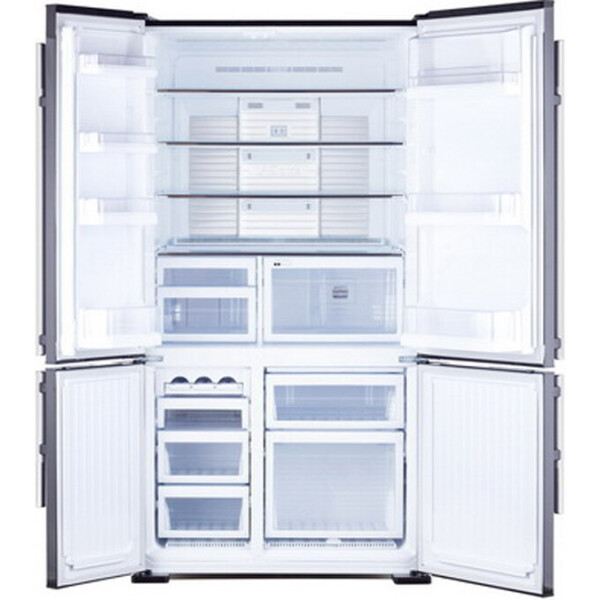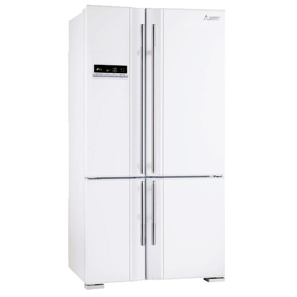 Холодильник Mitsubishi Electric MR-LR78G-PWH-R сделан по новой технологии. У него четыре дверцы, система Side-by-side. Двери здесь имеют доводчик, что позволяет им закрываться от легкого нажатия. Впрочем, если их забудут закрыть, устройство подаст звуковой и световой сигнал. Благодаря распашной системе открытия дверей, удобнее ставить внутрь крупные контейнеры с продуктами.