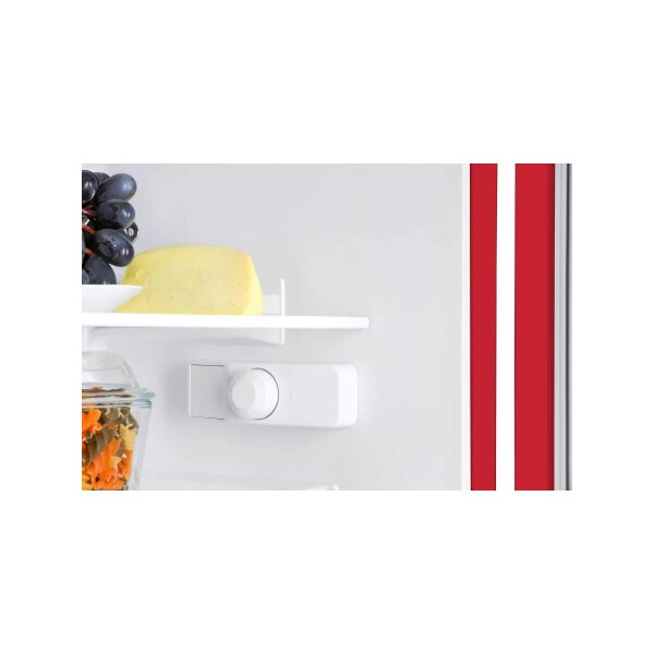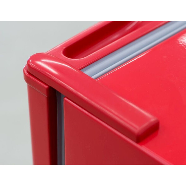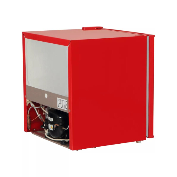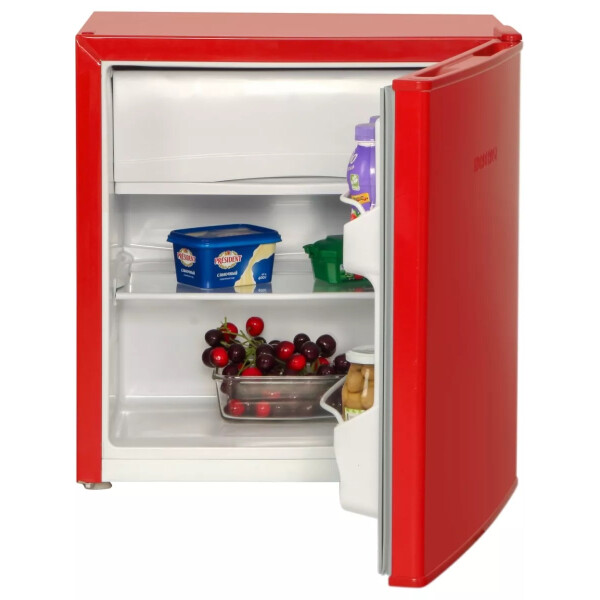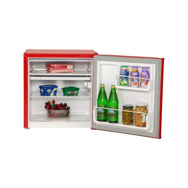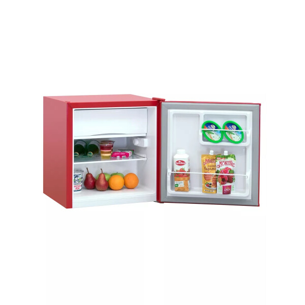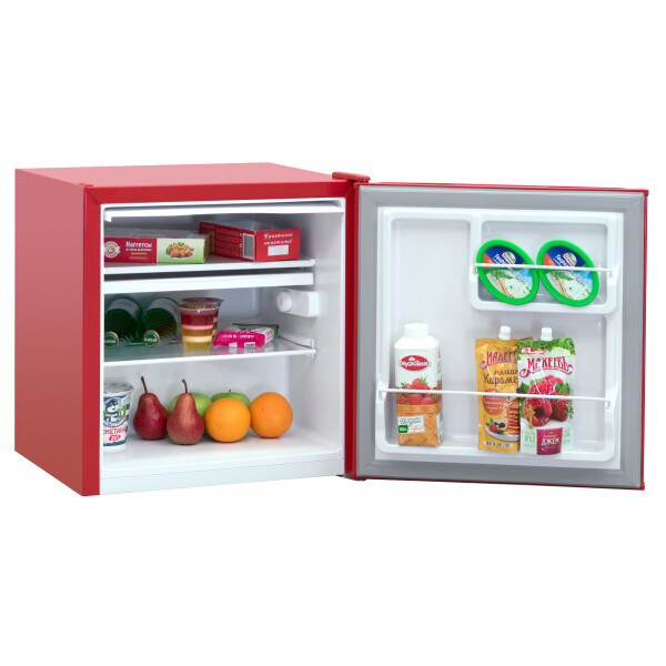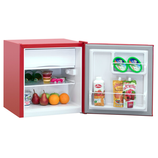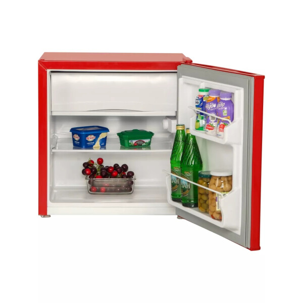 Однокамерный холодильник высотой всего в 52,5 см выполнен в ярком красном цвете, не смотря на небольшие габариты, он имеет объем холодильной камеры в 49 л. Стоит также выделить наличие специального отделения для скоропортящихся продуктов объемом в 11 литров (Температура в ОСП не ниже/не выше -3С...0С.) и относительно невысокое потребление энергии в год (110 кВт).