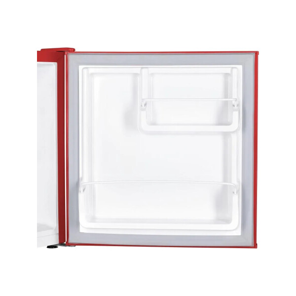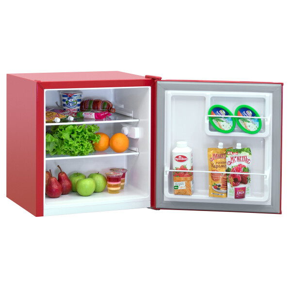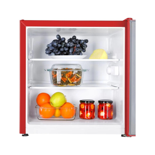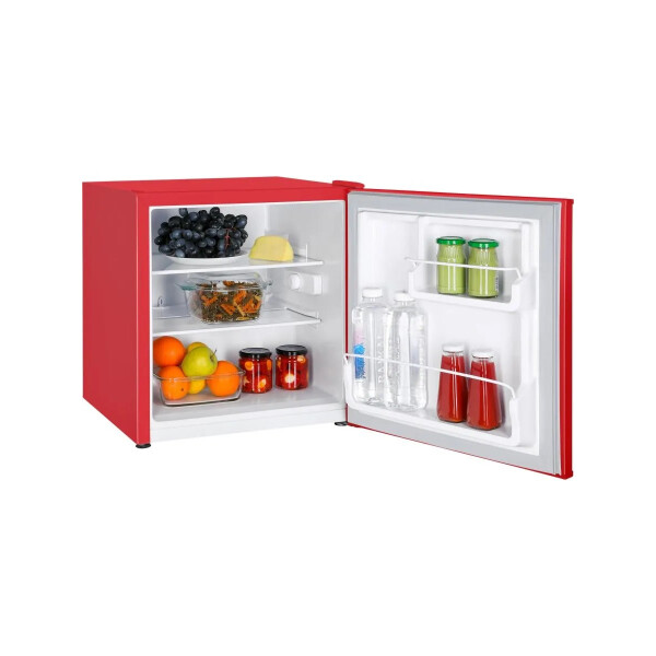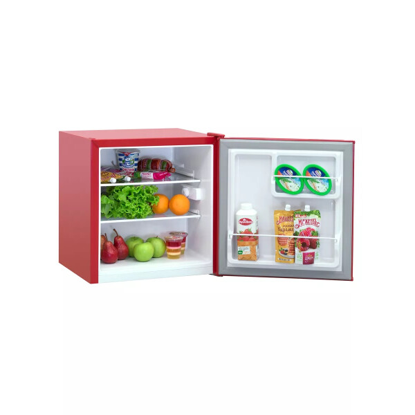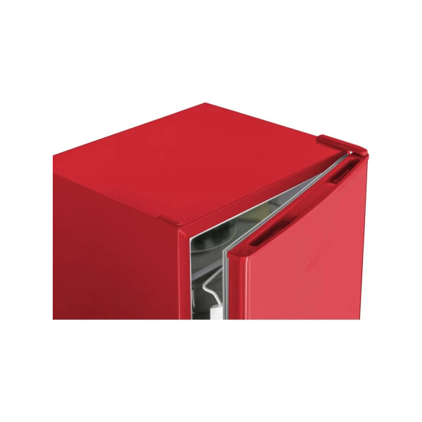 Однокамерный холодильник высотой всего в 52,5 см выполнен в ярком красном цвете, не смотря на небольшие габариты, он имеет объем холодильной камеры в 60 л. Стоит также выделить капельную систему размораживания и относительно невысокое потребление энергии в год (110 кВт).