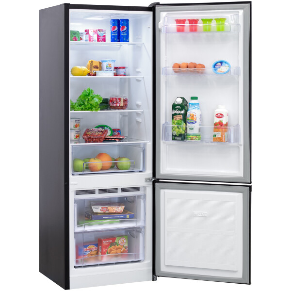 Холодильник Nordfrost NRB 122 232 с нижним расположением морозильной камеры. Общий полезный объем камер составляет 257 л. Дверцы открываются в правую сторону и могут быть перенавешены для открывания влево.