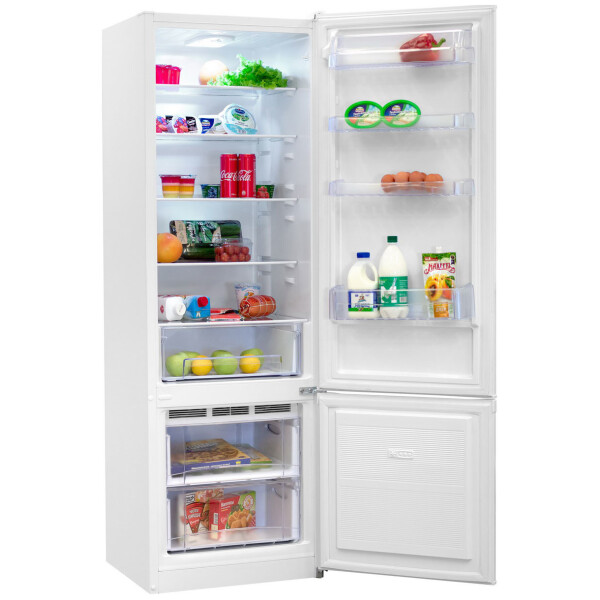 Холодильник Nordfrost NRB 124 032 с нижним расположением морозильной камеры высотой 180,7 см. Общий полезный объем составляет 290 л. Полезный объем холодильной камеры: 237 литров. Полезный объем морозильной камеры: 53 литра. Дверцы открываются в правую сторону и могут быть перенавешены для открывания влево.