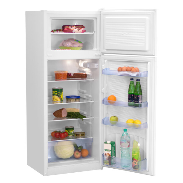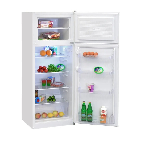 Двухкамерный холодильник с верхним расположением морозильной камеры высотой 150 см.