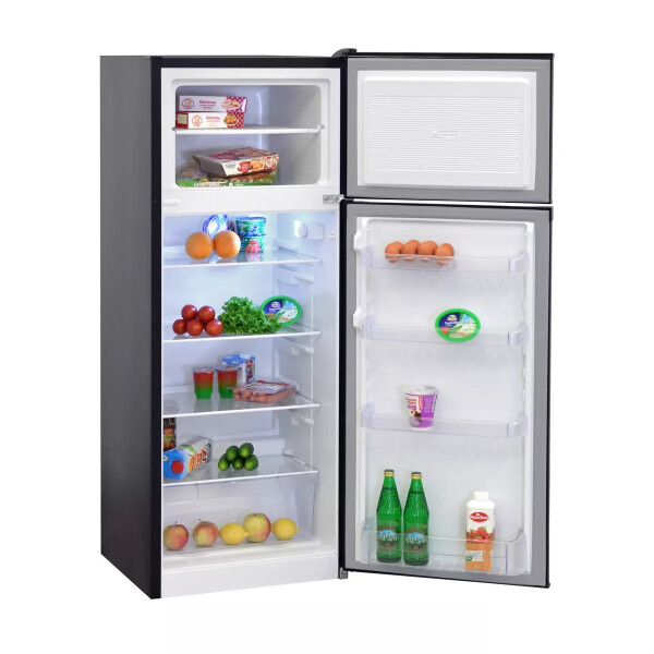 Двухкамерный холодильник с верхним расположением морозильной камеры. Общий объем 261л. Объем холодильной камеры (ХК) 210л. Объем морозильной камеры (МК) 51л.Температура в ХК 0С...+8С.Температура в МК не выше -18С.Освещение в ХК LED-подсветка Система оттаивания ХК автоматическая (капельная).