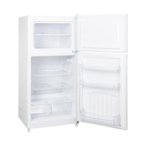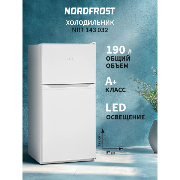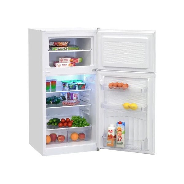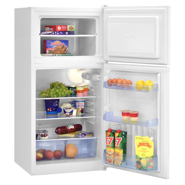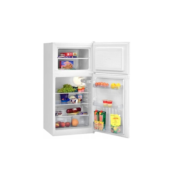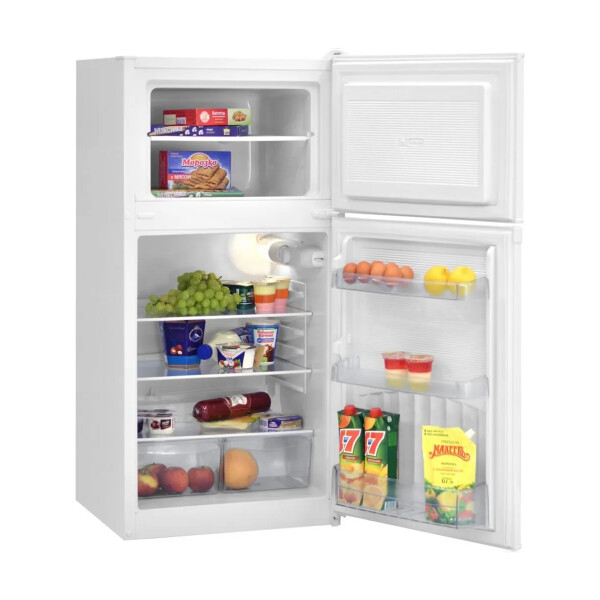 Двухкамерный холодильник с верхним расположением морозильной камеры высотой 124 см.