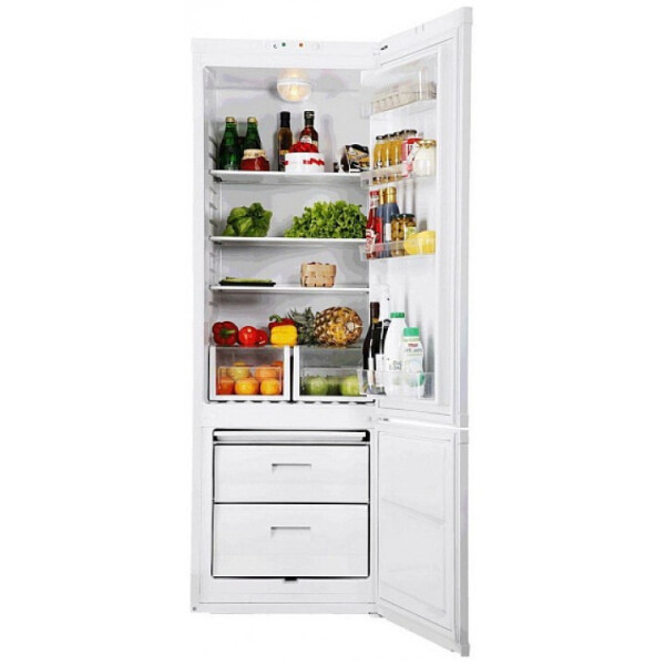 Холодильная камера имеет 4 стеклянные полочки, 2 прозрачных ящика внизу для овощей, фруктов, зелени. Полочки можно установить на необходимой высоте.