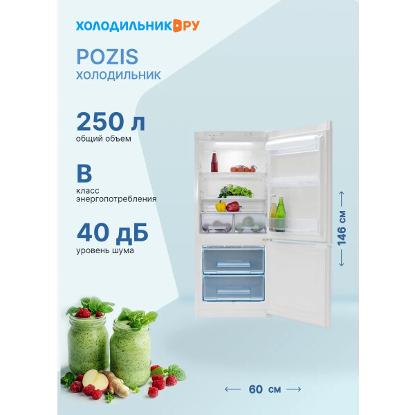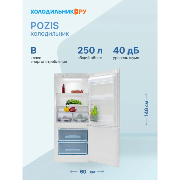 Pozis RK-101 потребляет 215 кВт за год. Холодильник экономичный, что станет преимуществом для ряда покупателей. В конструкции установлены морозильная и холодильная камеры, их объем 80 и 170 л. Удается разместить достаточно продуктов, устройство обладает компактными габаритами и не занимает много места в помещении.