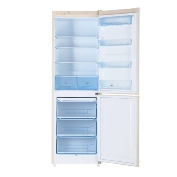 Для раздельного хранения продуктов в морозильном отсеке предусмотрены три пластиковых ящика. На случай незапланированного отключения электричества предусмотрено 21-часовое сохранение холода внутри обеих камер. Холодильное верхнее отделение выполнено с капельной системой оттаивания.