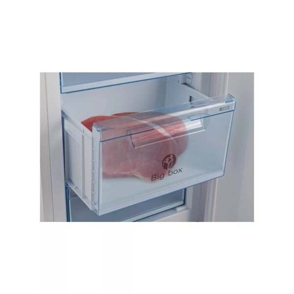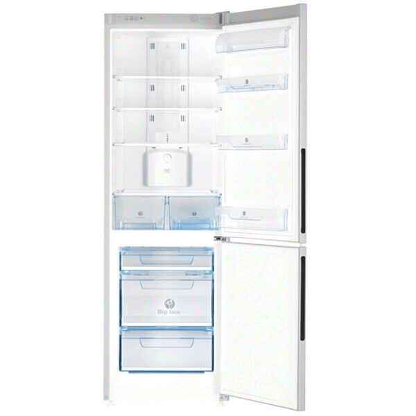Съемные дверные полочки легко регулируются по высоте. Вы легко подберете нужное вам пространство, поставив достаточно высокие бутылки. Внушительный объем ящика морозильного отделения Big box позволит заморозить и сохранить больше продуктов, ягод, овощей, мяса.