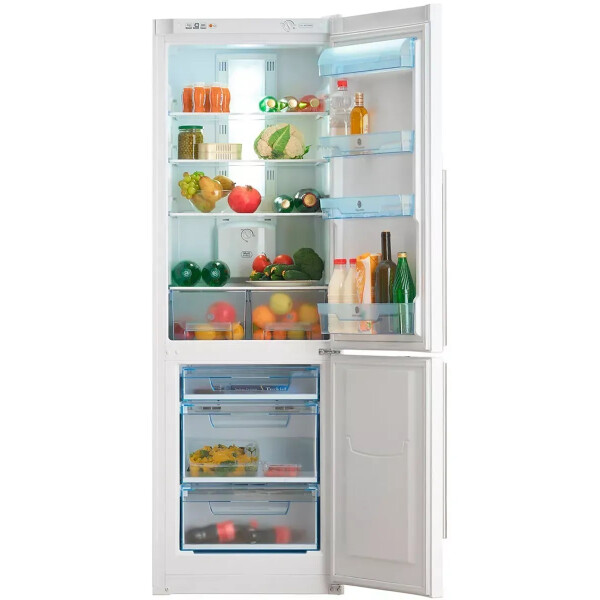 Обладающий 2-камерной конструкцией и объемом 314 л, он позволяет хранить достаточно большое количество разнообразных продуктов. В холодильной и морозильной камерах реализована автоматическая система охлаждения, которая обеспечивает эффективное поддержание температуры без образования наледи и инея.