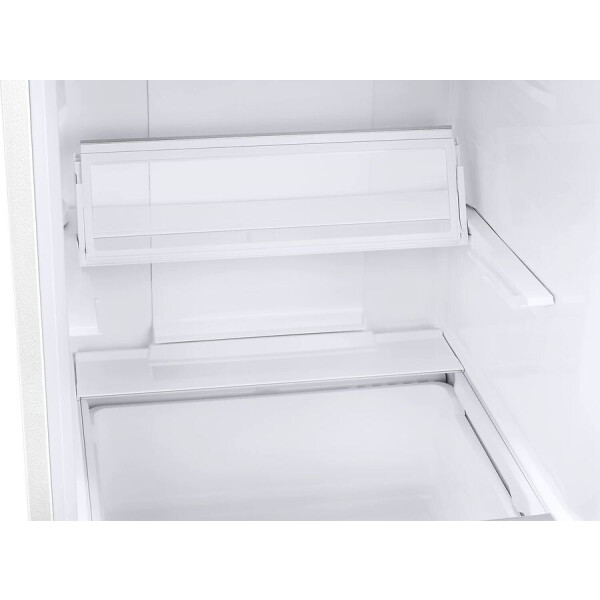 В обеих камерах Samsung RB33A3440WW используется система No Frost, что избавляет пользователя от ручного размораживания и обеспечивает равномерное распределение холодных потоков воздуха, исключающее образование наледи и инея на стенках. Внешнее покрытие корпуса выполнено из металла, что защищает холодильник от механических воздействий, позволяя ему сохранять надолго внешний вид. На верхнюю дверцу вынесен дисплей для более удобного отслеживания состояния аппарата.