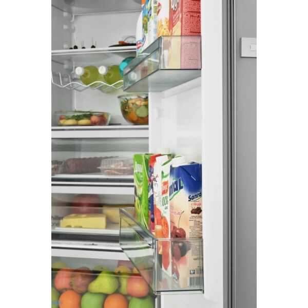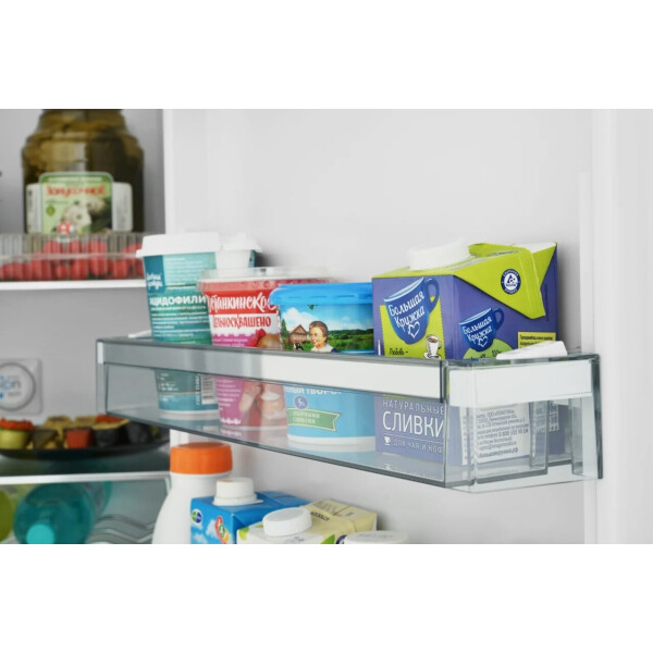 Технология V- LIFT позволяет регулировать высоту установки полки на двери по полозьям вверх/вниз для возможности размещения продуктов различного размера. Очень полезная функция для максимального использования пространства!