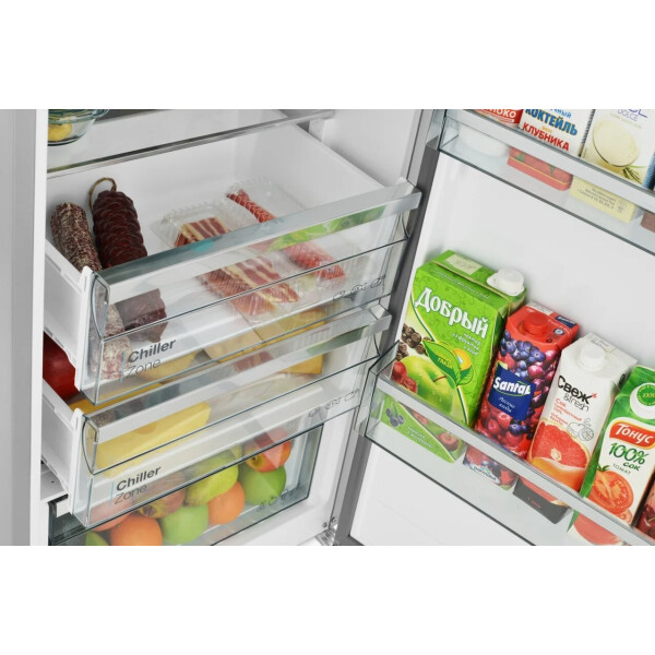 Chiller Zone (зона свежести или нулевая зона) - специальное отделение, удобный выдвижной ящик на роликовых направляющих с температурой, близкой к нулю, и определенным уровнем влажности, что является оптимальным условием для хранения свежих мясных и рыбных продуктов.