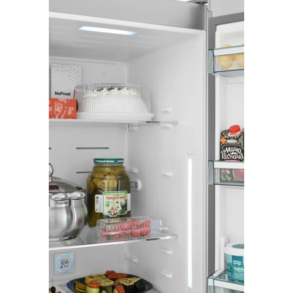 Технология Natural Ion Tech является инновационным преимуществом, выделяющим Scandilux среди большинства аналогичных холодильников. Чем важна эта технология? При хранении фруктов и овощей естественным образом вырабатывается этиленовый газ, который иногда называют гормоном старения. В замкнутой среде, например, в обычном холодильнике, он поглощается всеми фруктами и овощами, ускоряя процесс их порчи. Natural Ion Tech вырабатывает отрицательно заряженные ионы (равномерно распространяемые за счет многопоточной системы NoFrost), которые: